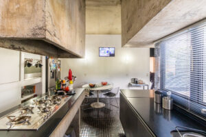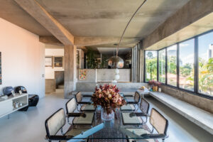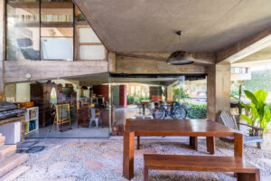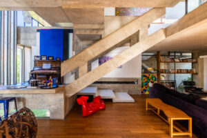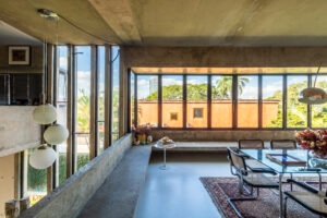 A Residência João Marino passou por uma cuidadosa restauração, assinada pela doutora em história da arquitetura Débora Lima, resgatando o design brutalista original de 1969. Um espaço onde história e modernidade se encontram.
